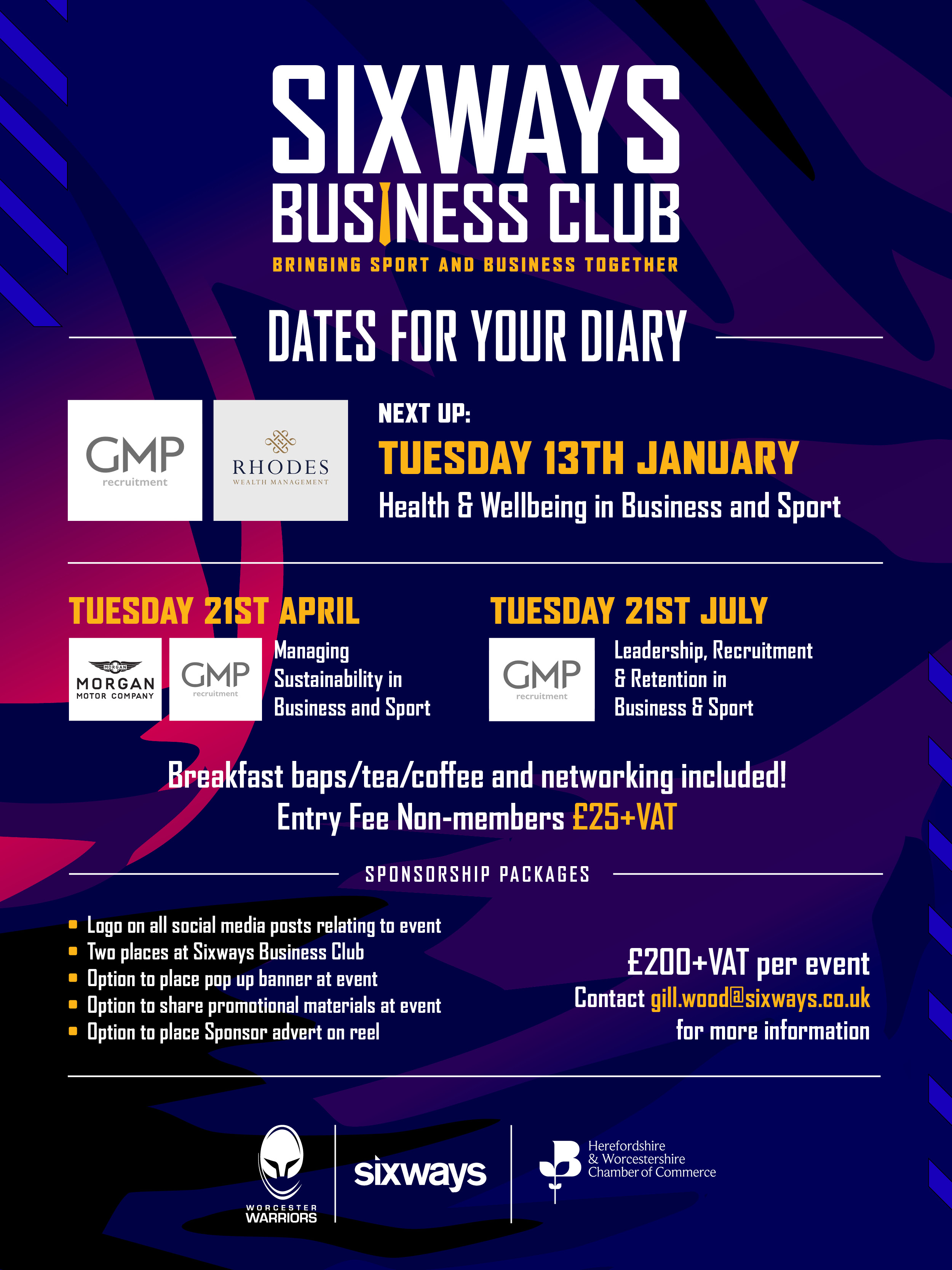 Following the outstanding success of our launch event, the Sixways Business Club returns for its second instalment, this time focusing on one of the most vital topics for modern organisations: Health & Wellbeing in Business & Sport.